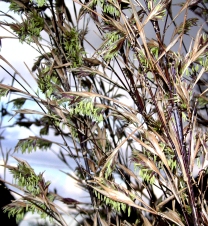 Die Fargesiablüte ist für denjenigen, der sie in seinem Garten erleben darf wahrscheinlich etwas Einmaliges in seinem Leben, wenn man den verschiedenen Quellen zu diesen Thema glauben darf. Danach blüht Fargesia etwa alle 80 Jahre und zwar eine Art weltweit gleichzeitig. Die Blüte erscheint unauffällig, aber im Detail recht interessant. Erstaunlich ist auch, dass sich die Blütezeit länger als über ein Jahr hinziehen kann. Mein Nachbar hat im Frühjahr 2005 alle Triebe seiner blühenden Fargesia abgeschnitten und mir den Wurzelstock überlassen. Nach kurzer Zeit kamen neue Triebe die jetzt im Frühjahr 2006 erneut blühen.